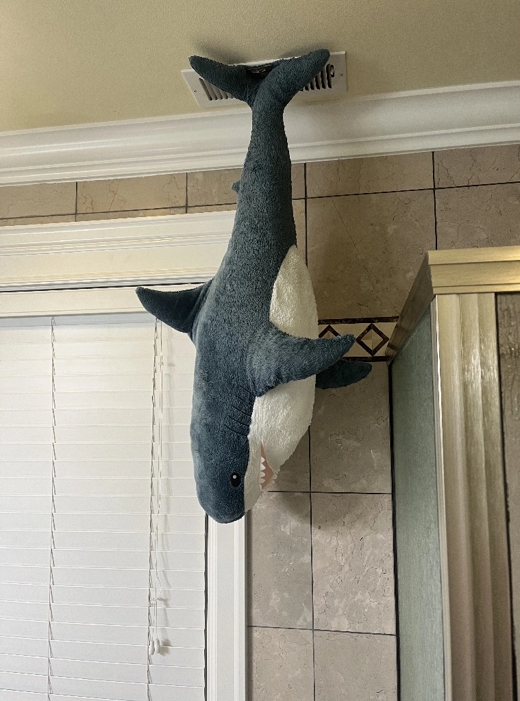 tumble-drying can be extremely disorienting for your blåhaj. if you choose the more humane route of air drying i recommend doing so near a vent to improve airflow.