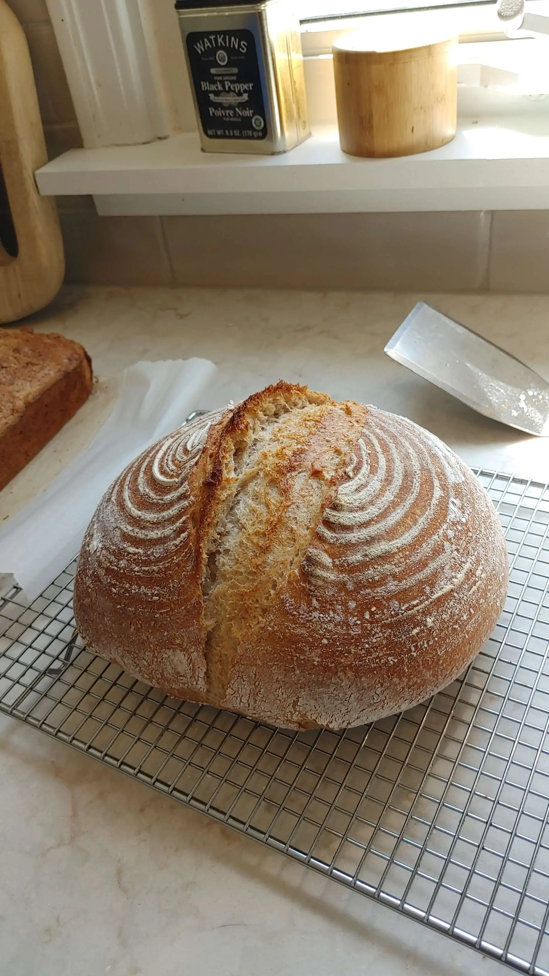 I usually do a 850g raw loaf. Baked in a Dutch-Oven for 40 minuets at 450°f.