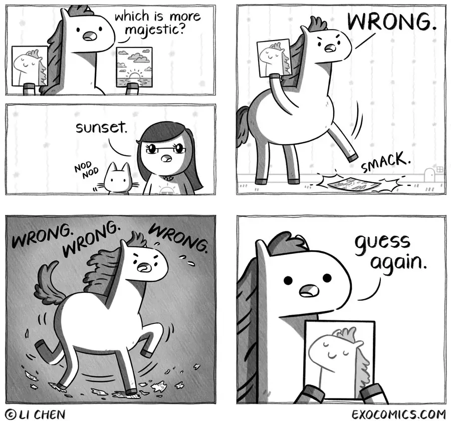 Comic Strips @lemmy.world Sundray @lemmus.org 1y ago Which is more majestic? Extra Ordinary Comics by Li Chen, for April 24, 2024.Alt text= "AHEM. O_O"