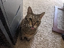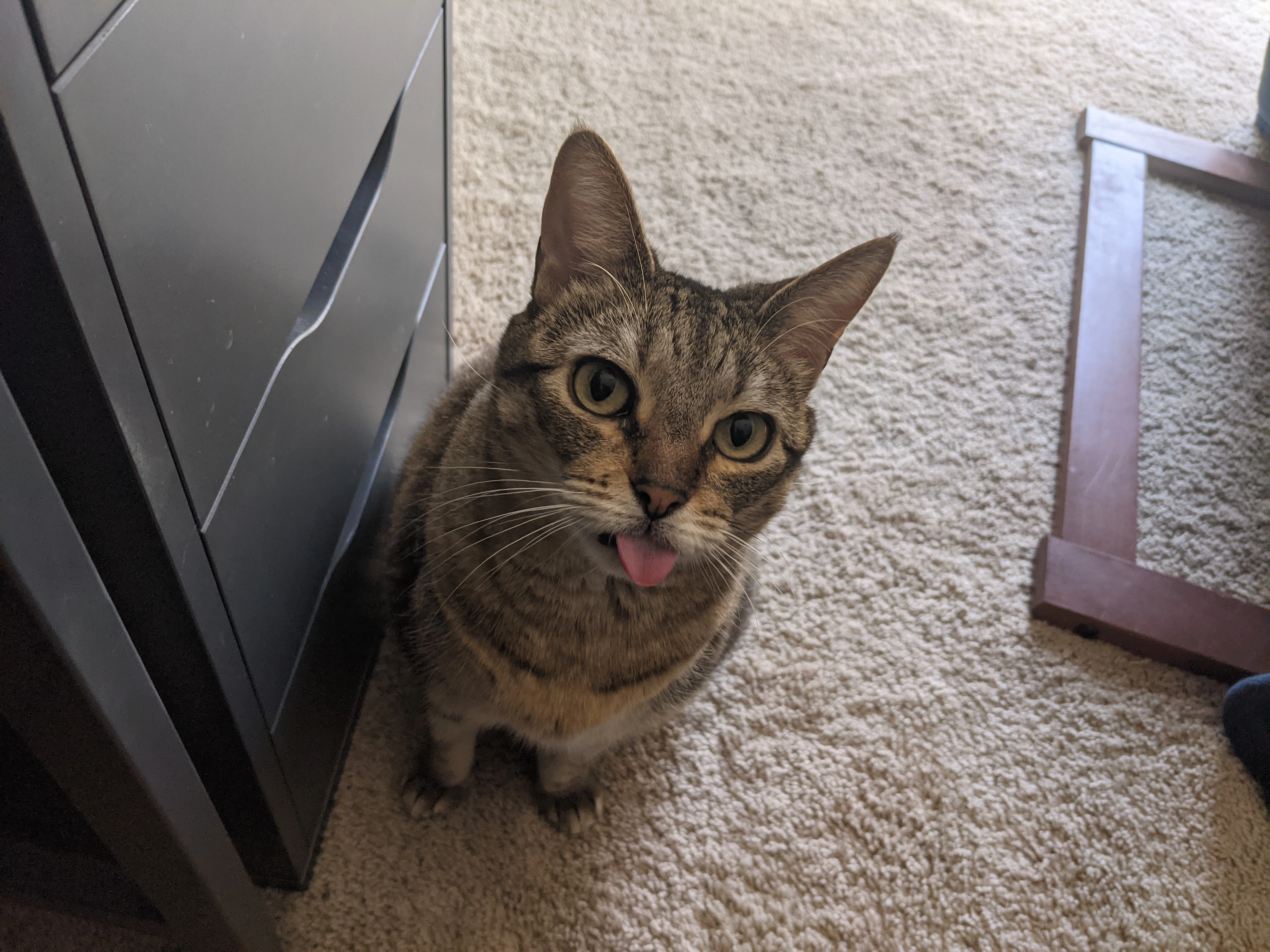 This is Scooty, sometimes known as Scout. She's currently 11 years old and was 9 in this photo. She's a bit of a dingdong and we love her very much. Please enjoy this giant blep.