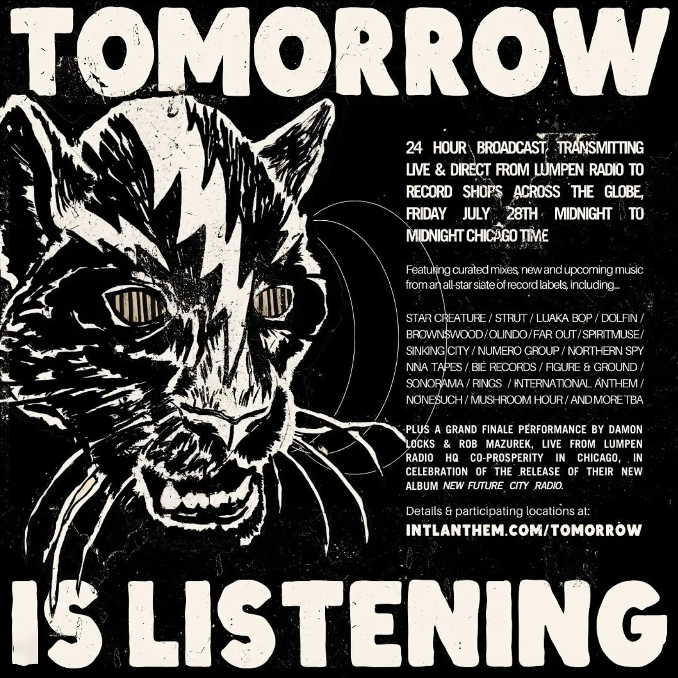 TOMORROW IS LISTENING will be available on terrestrial FM radio in the Chicago area via Lumpen Radio (105.5 FM); but more importantly, we have a growing list of independent record shops across the globe who will be tuning in.