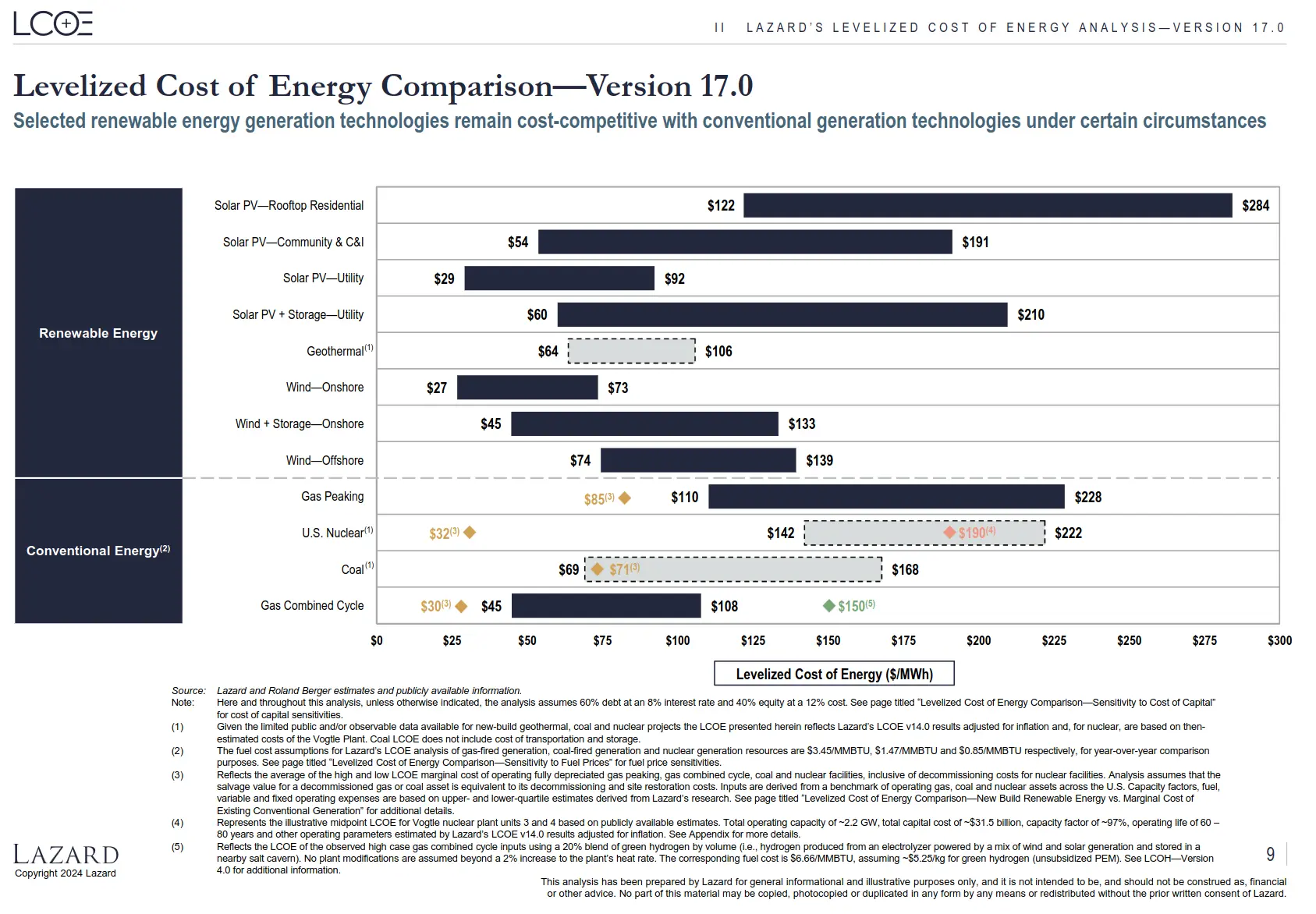 The hippy-dippy looney lefty guys from Lazard investment bank come to the conclusion that wind plus storage at its most expensive is still considerably cheaper than nuclear at its cheapest.