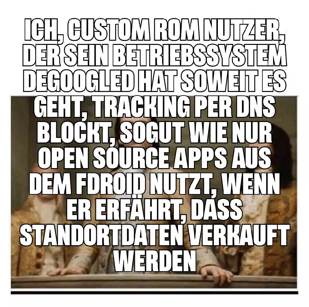 Ich, Custom rom nutzer, der sein betriebssystem degoogled hat soweit es geht, tracking per dns blockt, sogut wie nur open source apps aus dem fdroid nutzt, wenn er erfährt, dass standortdaten verkauft werden, war leider zu lang