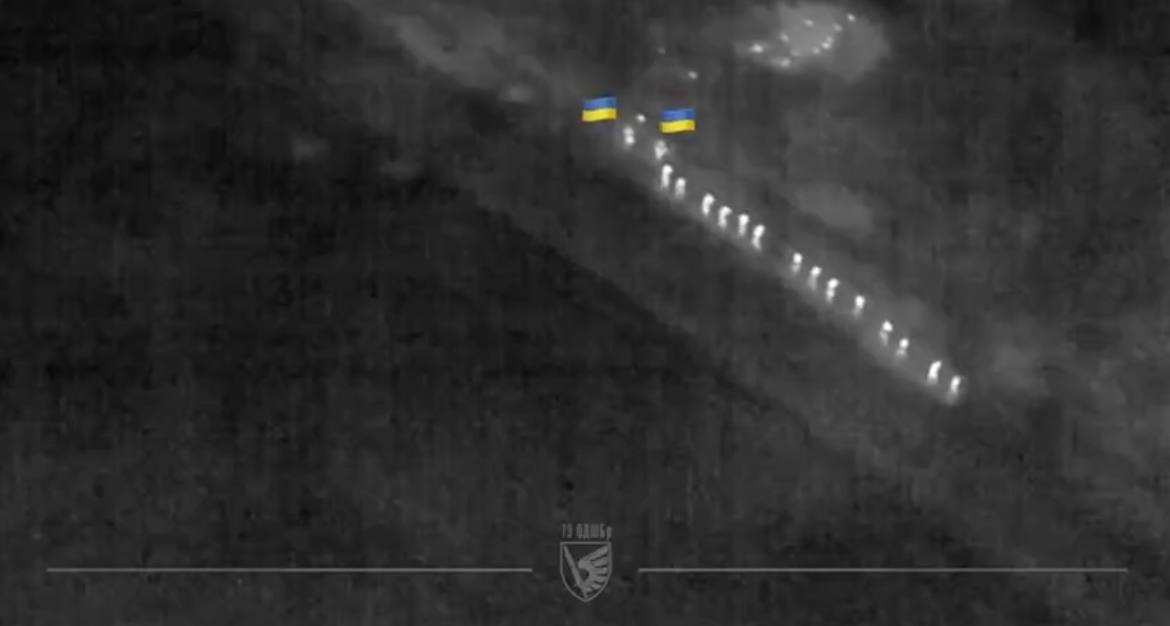 In unique night drone footage, we see two of our paratroopers actually leading Russian soldiers into captivity in formation. Brilliant and heroic work.