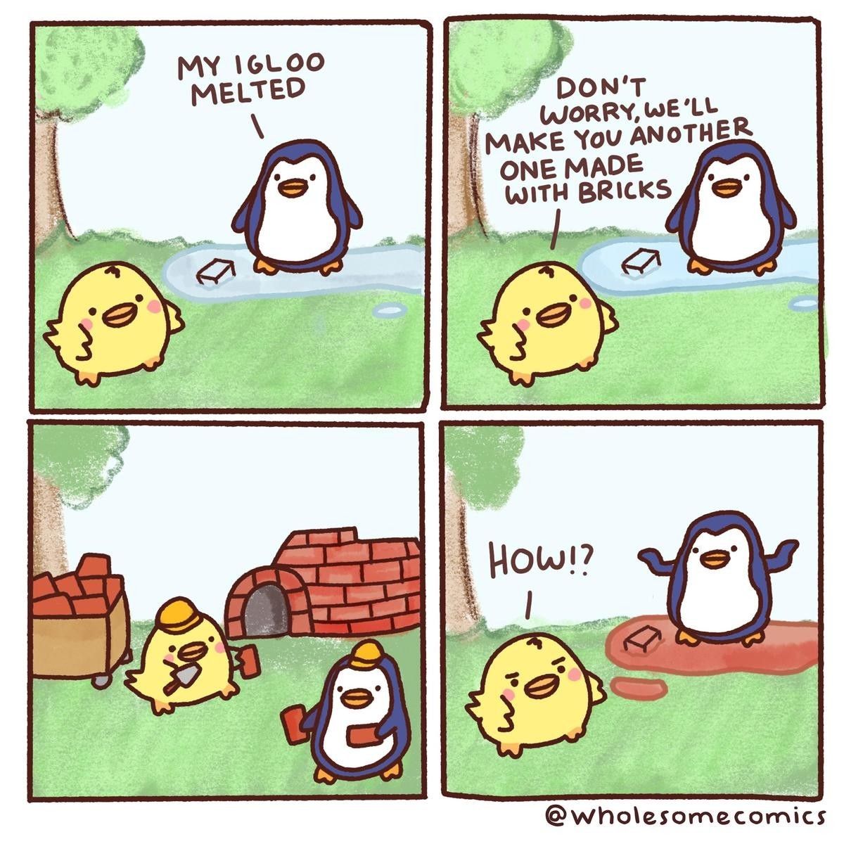 Comic Strips @lemmy.world EfreetSK @lemmy.world 9mo ago Igloo problems ❄️ Source: https://x.com/WholesomeComics/status/1186340911665410049