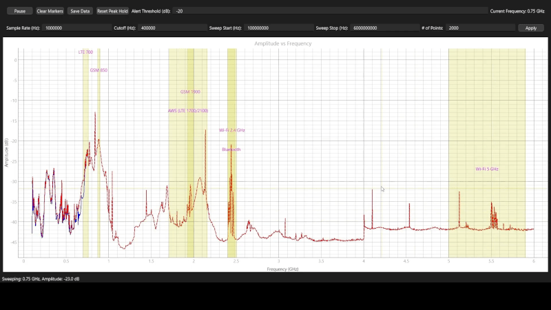 While it may seem that 100 MHz is a bit limiting, there's plenty of activity in that range, including WiFi, Bluetooth, radio systems, both commercial and amateur, and even cell phones.