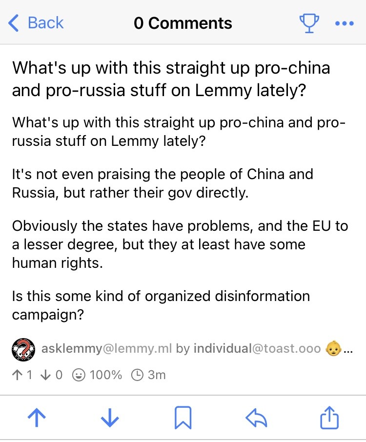 InitialsDiceBearhttps://github.com/dicebear/dicebearhttps://creativecommons.org/publicdomain/zero/1.0/„Initials” (https://github.com/dicebear/dicebear) by „DiceBear”, licensed under „CC0 1.0” (https://creativecommons.org/publicdomain/zero/1.0/)LO Lost Lemmings @lemmy.world s @piefed.world 2mo ago Look at the host instance for the community ALT