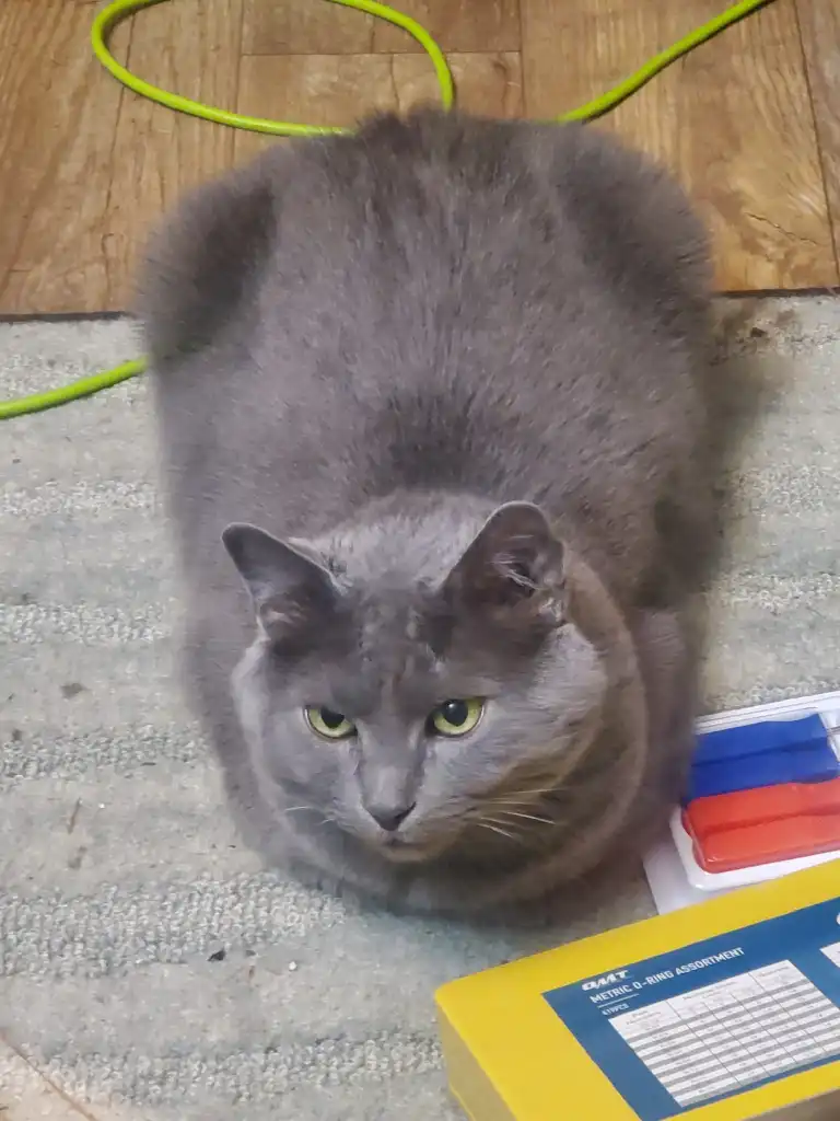 I was adopted by a grey cat for a while. It was so calm and gentle. Good kitty. c: