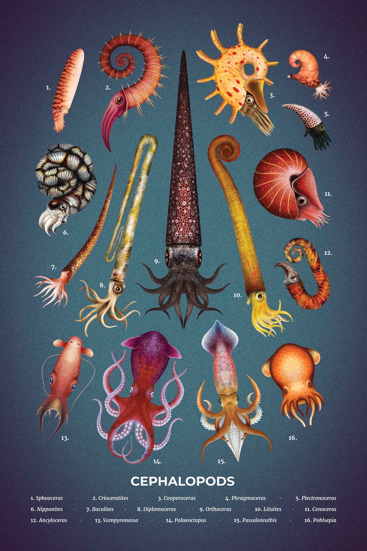 Lol, at first glance I thought this was a poster for some new movie. All we need to do is change the font of "Cephalopods" to something exciting, and arrange the listed species as if they were actors' names.