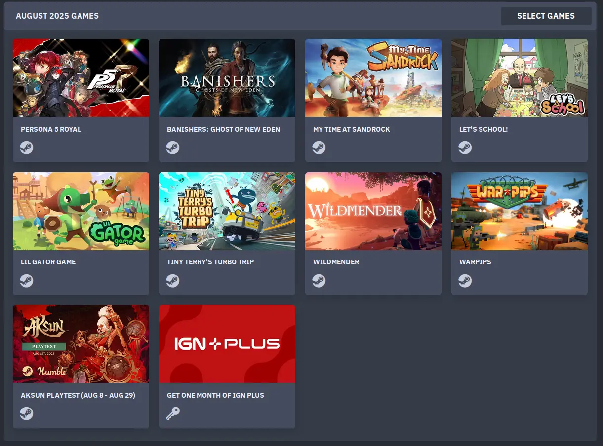 Humble changed their pricing model this year, so it's my last year subscribing, so I want to use a little more discretion and skip some months because they do have "tent poles" that interest me sometimes. This month the tent pole is Persona 5, which I hear is good, but I still have Persona 4 on my backlog and it doesn't interest me too much.
