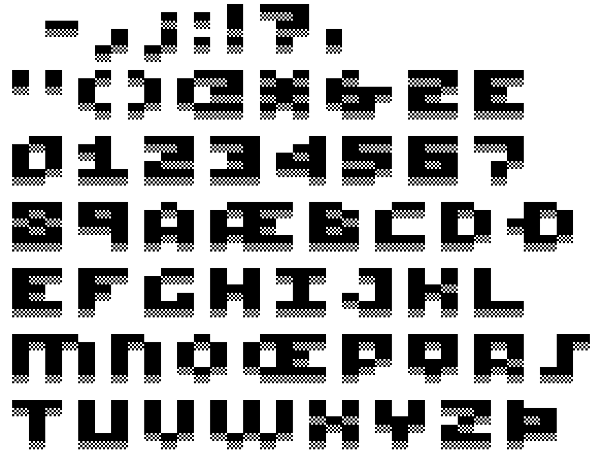 Clive is a font built from the semigraphics of the ZX81 microcomputer.