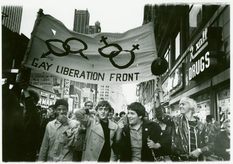 Image: Gay Liberation Front members marching on Times Square, Fall 1969. Photograph by Diana Davies.