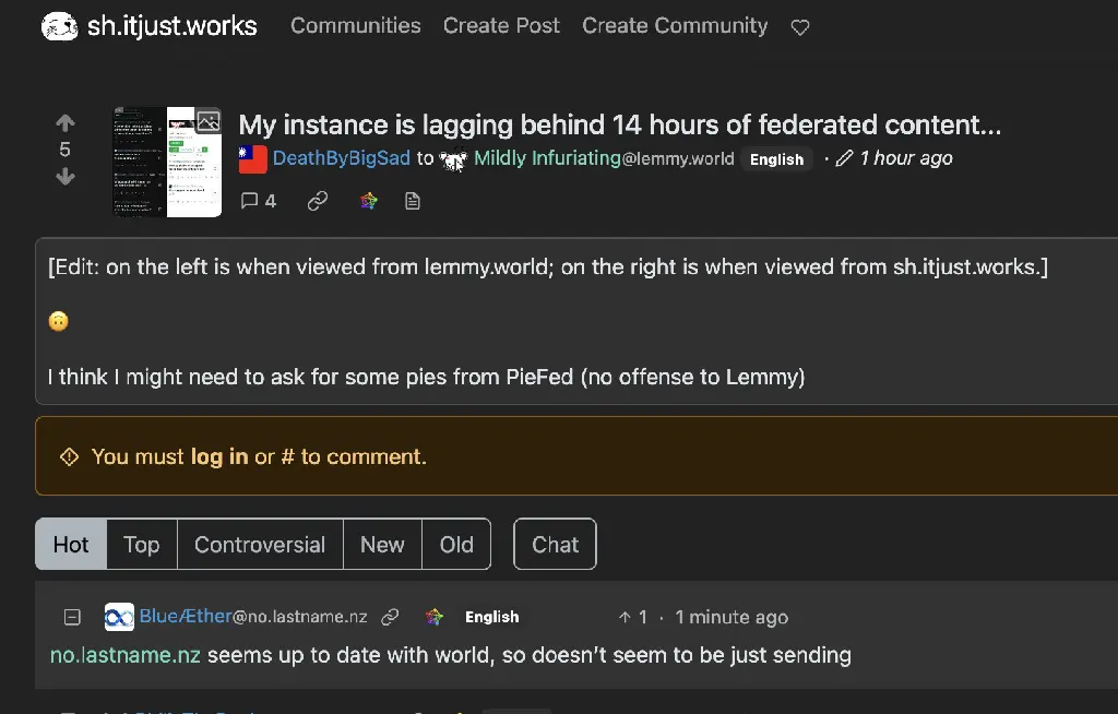 I think I might need to ask for some pies from PieFed (no offense to Lemmy)