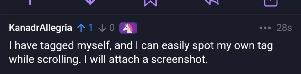I have tagged myself, and I can easily spot my own tag while scrolling. I will attach a screenshot.