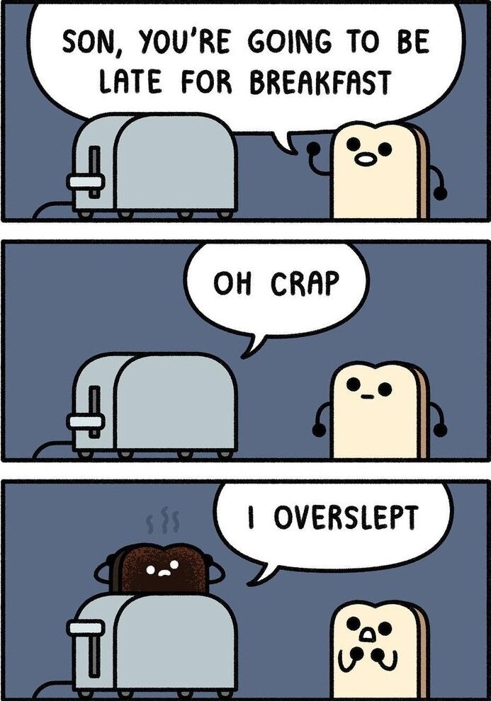 Comic Strips @lemmy.world perishthethought @piefed.social 2w ago Late for breakfast From https://pixelfed.social/p/memes.pixelfed/872120635379763793