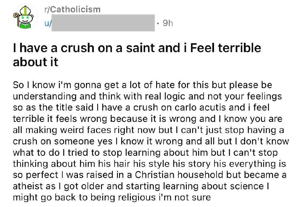 InitialsDiceBearhttps://github.com/dicebear/dicebearhttps://creativecommons.org/publicdomain/zero/1.0/„Initials” (https://github.com/dicebear/dicebear) by „DiceBear”, licensed under „CC0 1.0” (https://creativecommons.org/publicdomain/zero/1.0/)CA Catholicism @lemmy.world dullbananas (Joseph Silva) @lemmy.ca 2mo ago "Crush on Carlo Acutis"