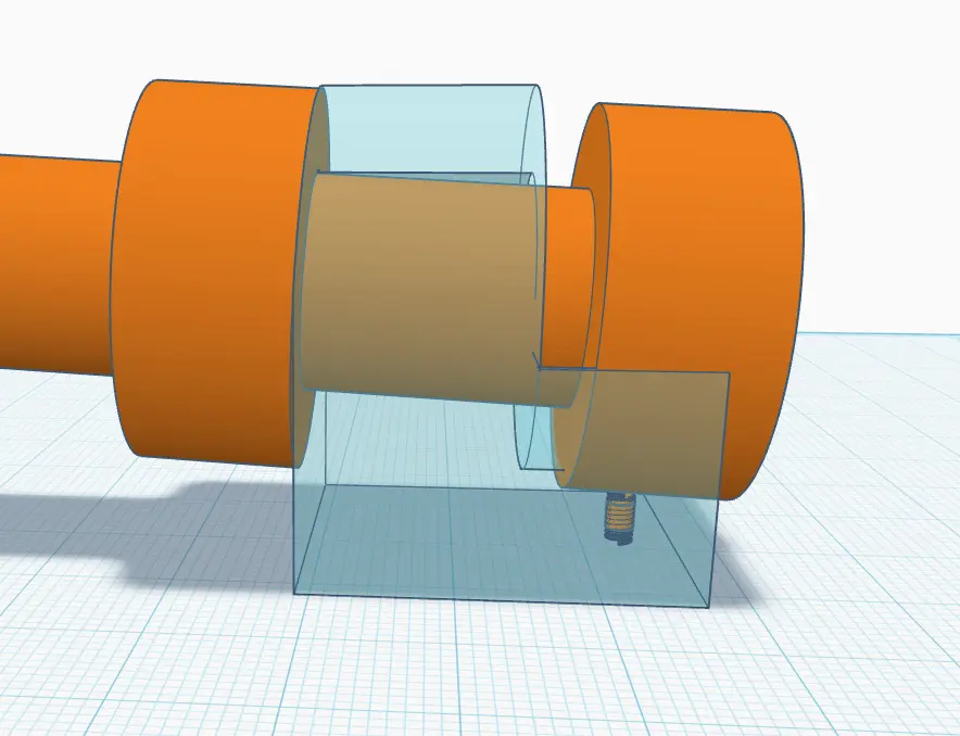 Just thinking about this. Would it be possible? Using two collars, allowing the barrel to move back 3-4mm and tilt back 2-3°. I know this is in TinkerCAD, but I'm just messing with the idea.
