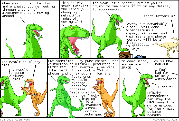 Astrophotography @lemmy.world Optional @lemmy.world 3w ago Luck www.qwantz.com Dinosaur Comics! Mouse-over: Tap for spoiler