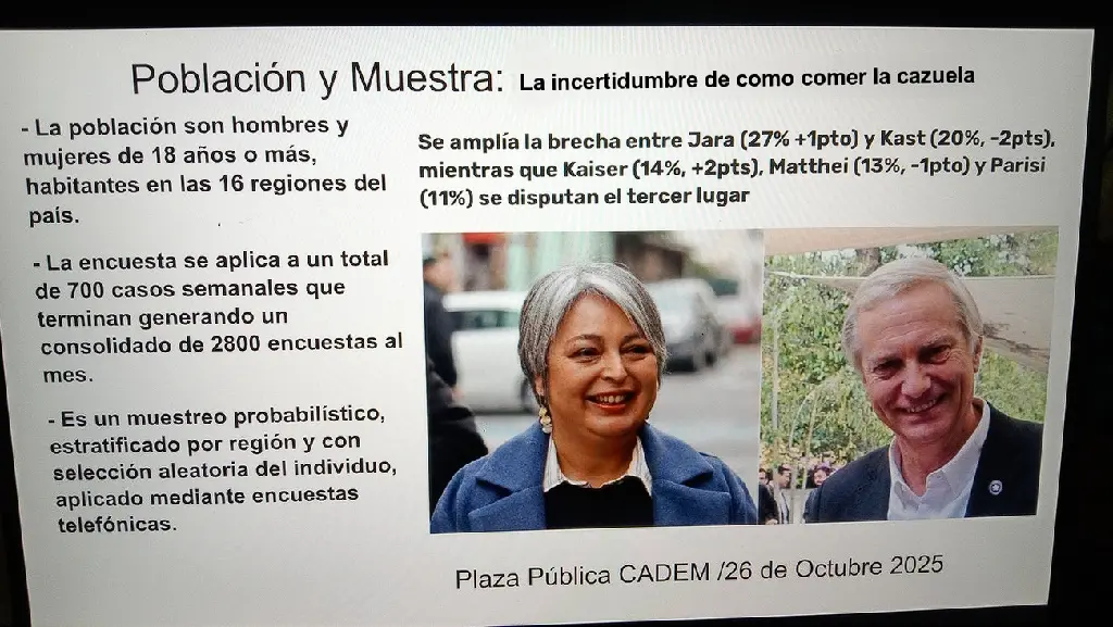 Quisiera saber las encuestas ahora, las chances de que salga cada candidato, jara pasa a segunda vuelta, si o si, vd?