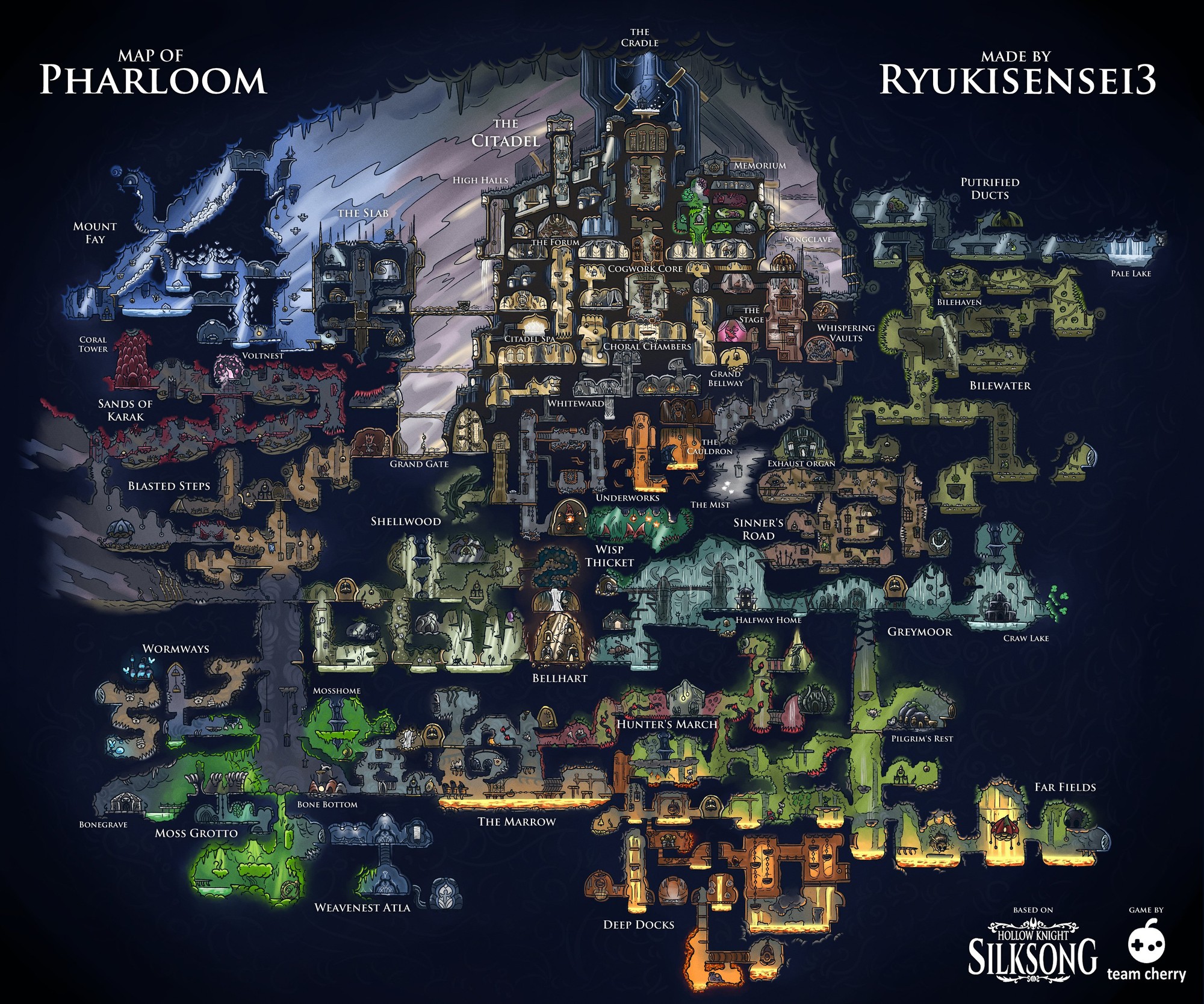 Hollow Knight @lemmy.world popcar2 @piefed.ca 5d ago Complete Map of Pharloom by RyukiSensei3 Lovely fanart I wanted to share.