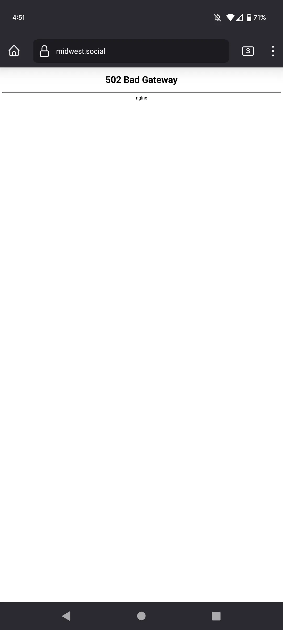 InitialsDiceBearhttps://github.com/dicebear/dicebearhttps://creativecommons.org/publicdomain/zero/1.0/„Initials” (https://github.com/dicebear/dicebear) by „DiceBear”, licensed under „CC0 1.0” (https://creativecommons.org/publicdomain/zero/1.0/)LS Lemmy Support @lemmy.ml Percy @lemmy.one 2y ago how long does a 502 error usually last? (midwest.social) I'm trying to sign in to create a community
