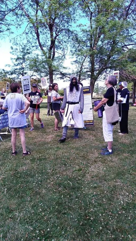 Edit: the guy in crusader armor is known around the Cleveland, Ohio area as the Alt Knight who pretty much protests anything even remotely progressive. Pic below.
