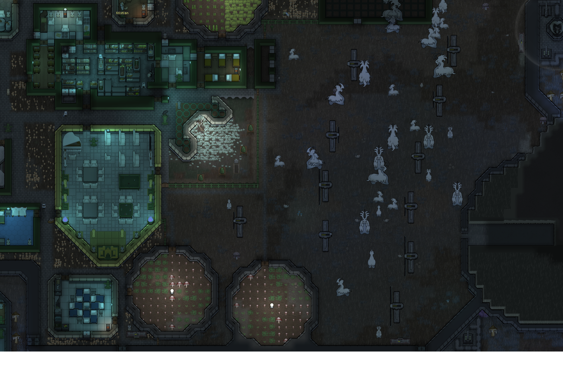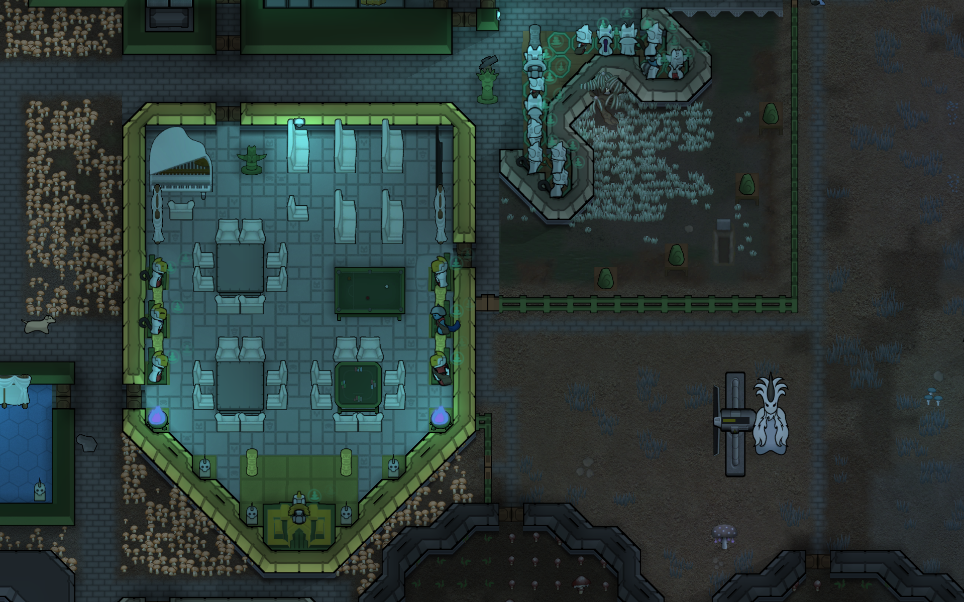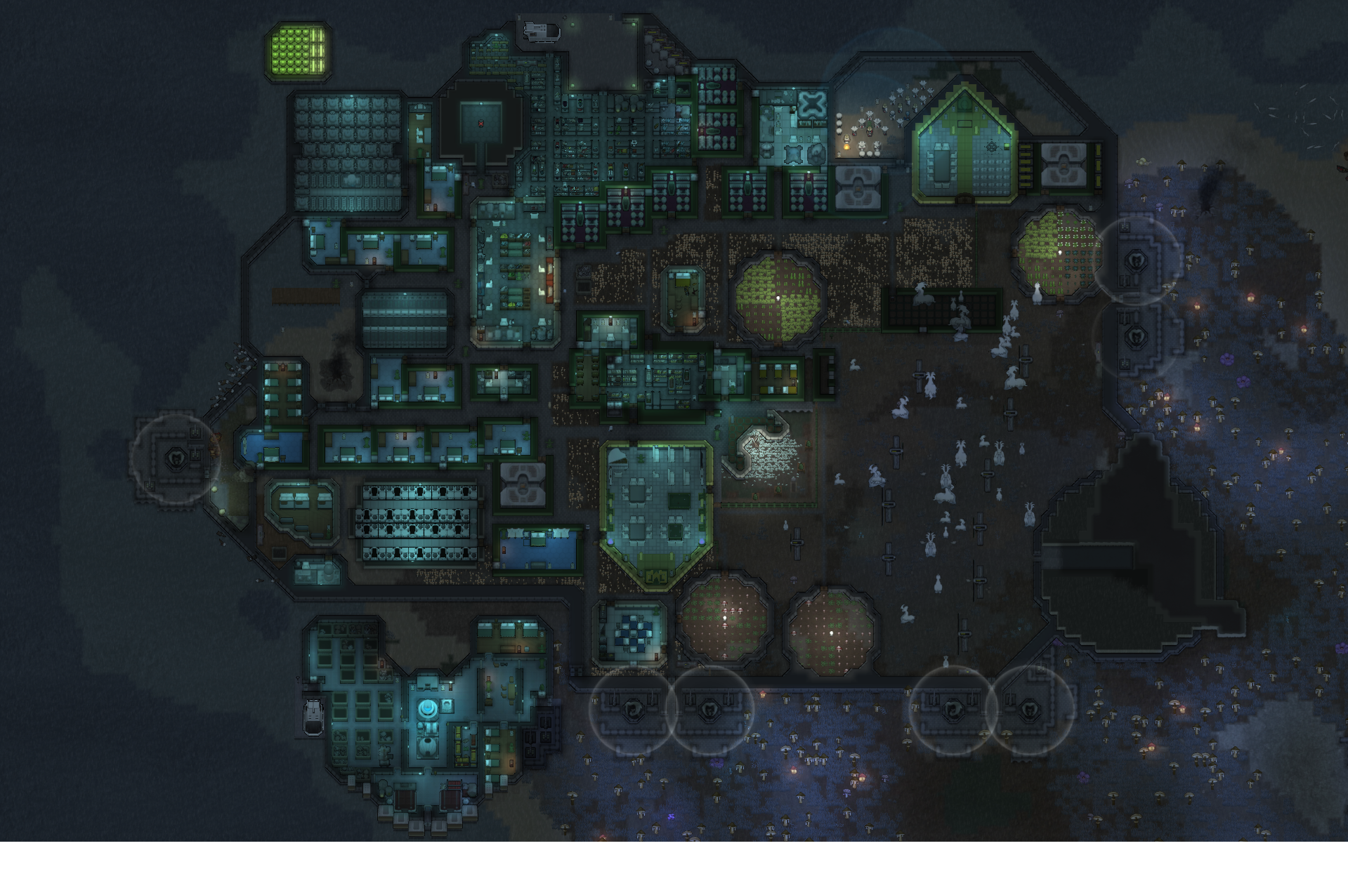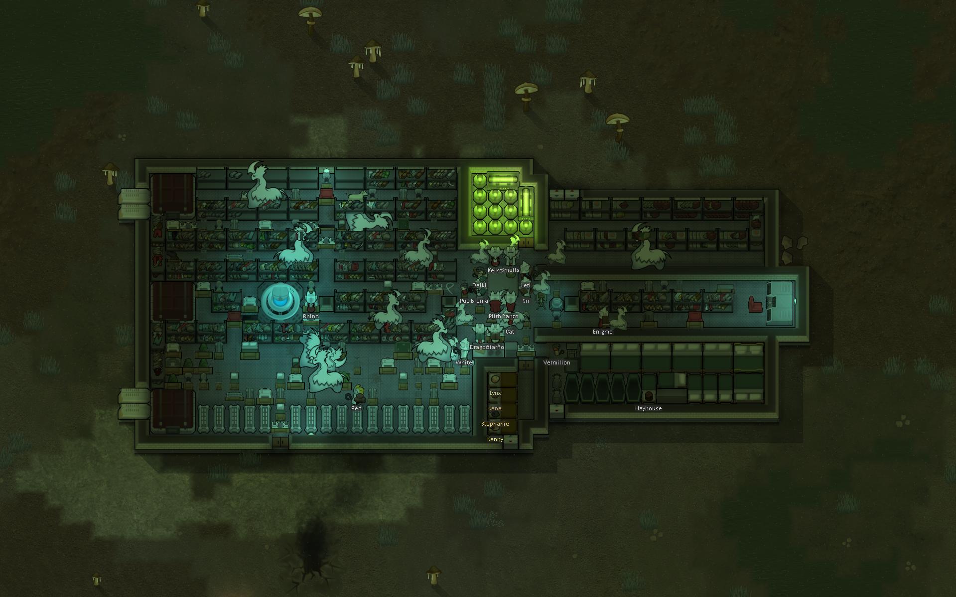 Margaritaville: Late-game glowforest colony (feat. alpha thrumbo ranch, mechhive run, extremely-ancient-but-still-good dog)