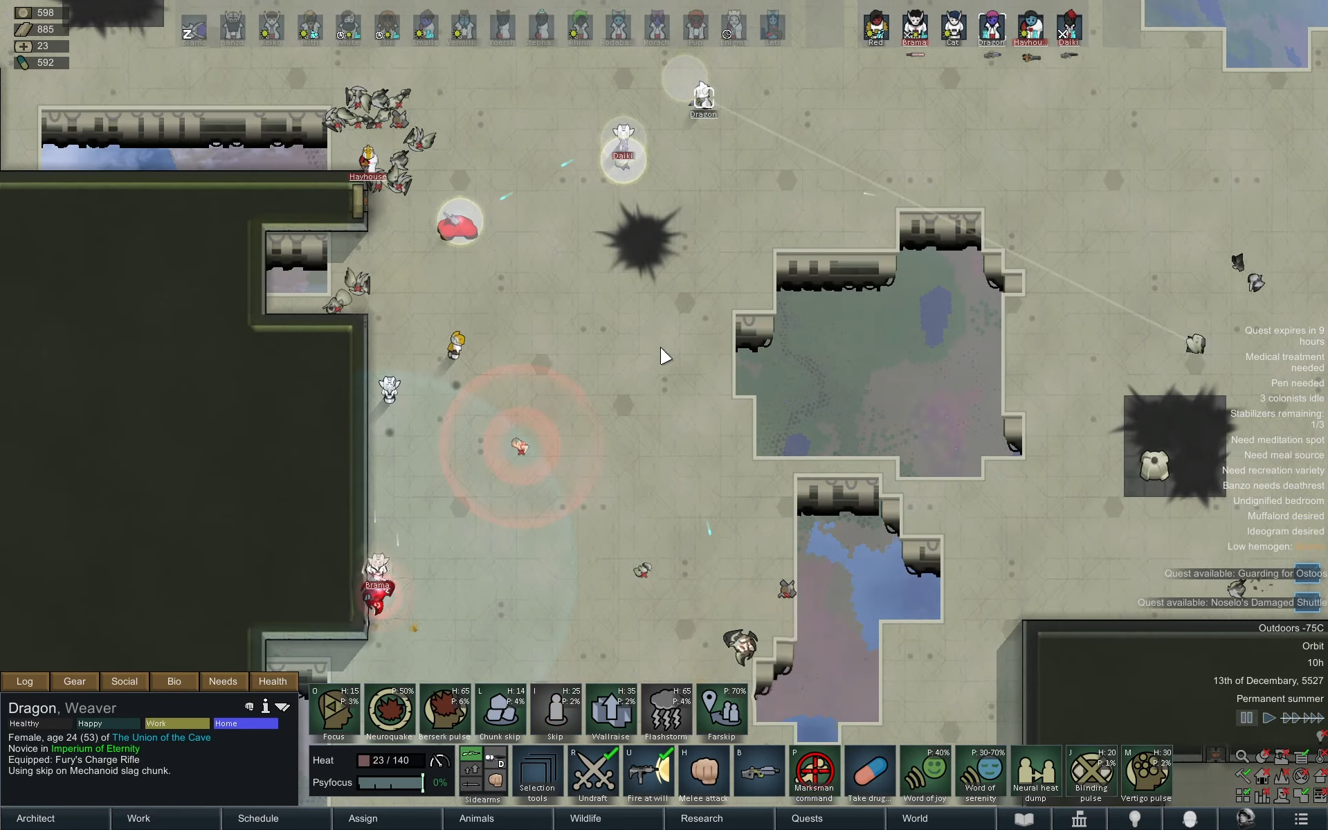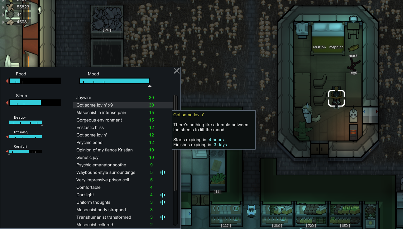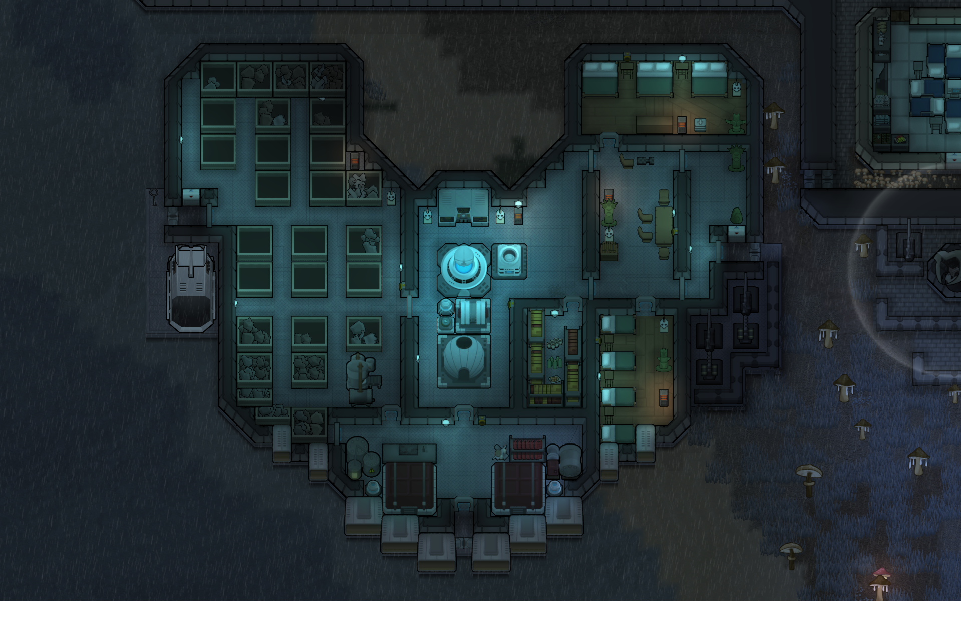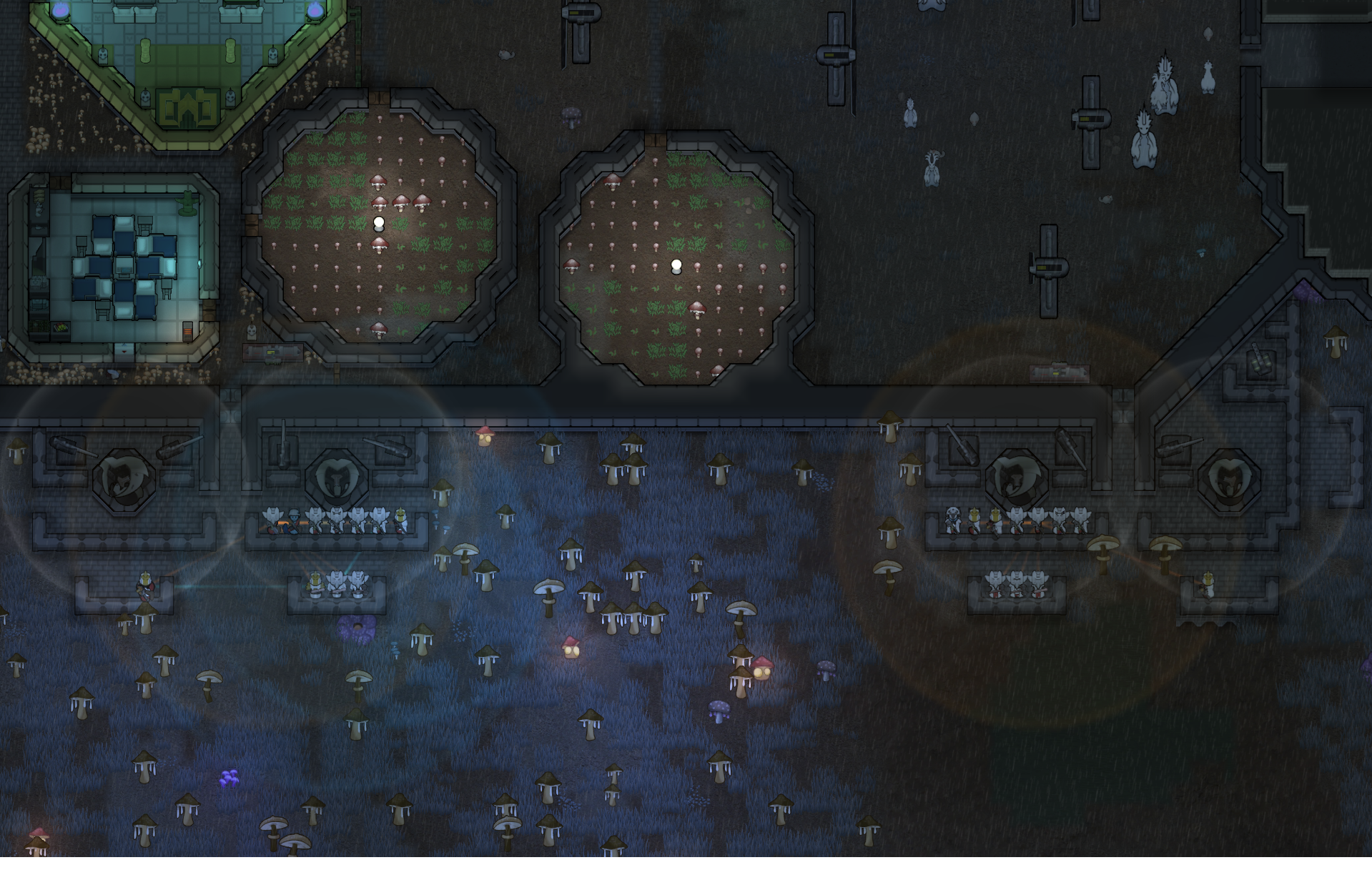 Margaritaville: Late-game glowforest colony (feat. alpha thrumbo ranch, mechhive run, extremely-ancient-but-still-good dog)