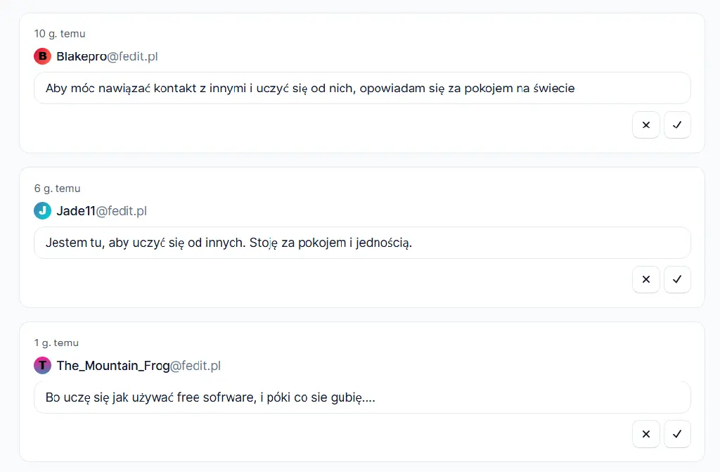 Pytanie do admina/moda: Czy szmer dzisiaj też dostał aplikacje w których userzy chcą "uczyć się od innych" i "opowiadają się za pokojem na świecie"?